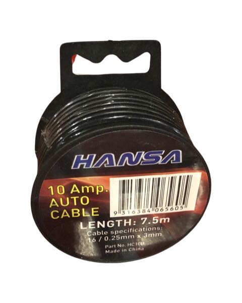 10 AMP AUTO CABLE 7.5M - 16/0.25mm x 3mm Black
