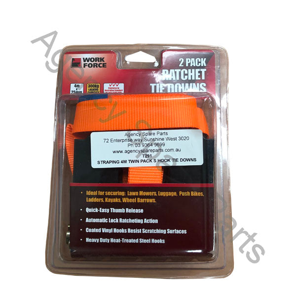 STRAPING 4M TWIN PACK S HOOK TIE DOWNS